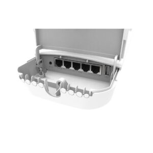 OmniTIK 5 PoE ac features five Gigabit Ethernet ports and support for 802.11ac. It’s equipped with a powerful 720MHz CPU, 128MB RAM, high power 802.11a/n/ac Dual Chain wireless (support for AC as well as backwards compatible with regular 802.11a/n CPE) and comes with a new design weatherproof outdoor enclosure, two integrated 7.5dBi 5GHz omni antennas, a power supply, a PoE injector and a mounting kit.