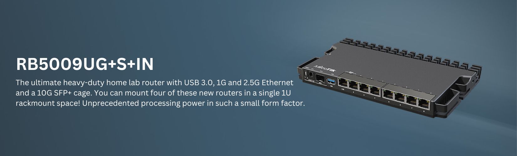 Double the usual performance: we took your feedback from the MikroTik User Meetings to create the perfect home lab router: compact, powerful, with multiple powering options and efficient cooling.RB5009 has it all, and even more!