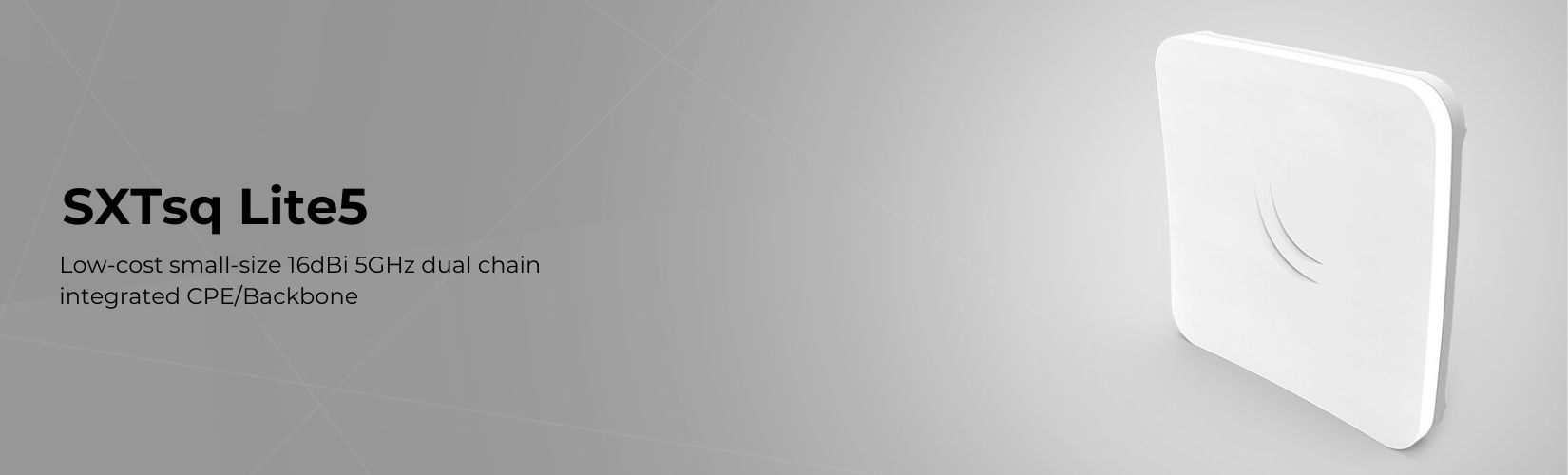 The SXTsq Lite5 is a compact and lightweight outdoor wireless device with an integrated antenna. Perfect for point to point links of up to 12 kilometers or as a CPE unit. It is compact, weatherproof and easy to mount. The SXTsq Lite5 retains a 16dBi antenna like the SXT Lite5, our previous model, yet the antenna design has been improved and the physical size has been dramatically reduced – the SXTsq is two times thinner (see photos for comparison).